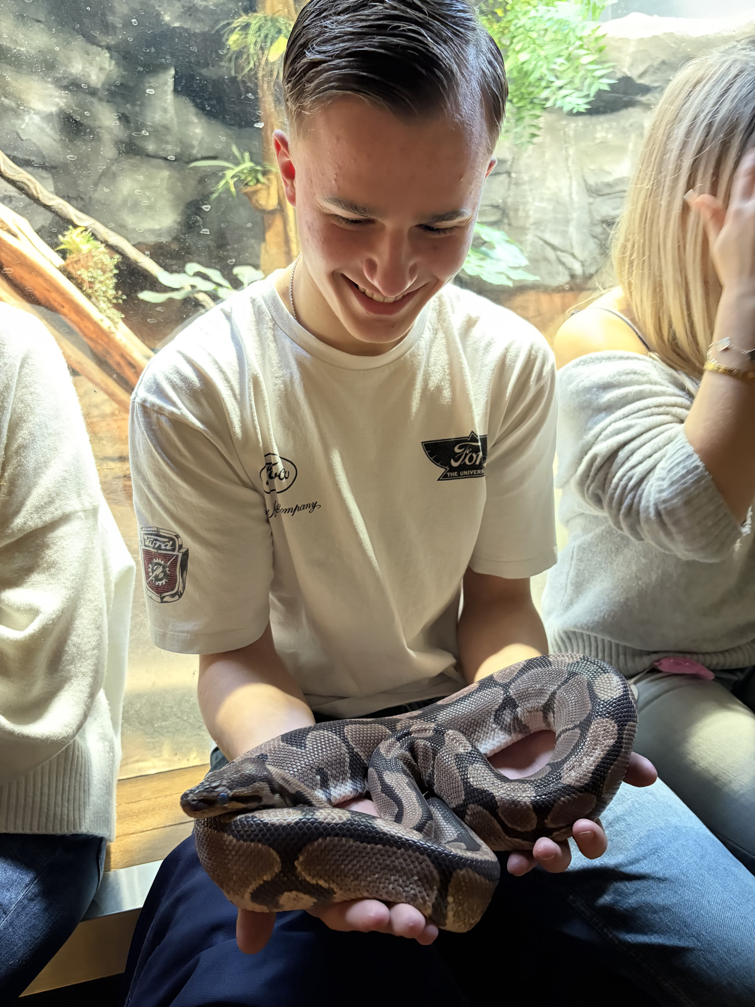 Zum Abschluss wartete noch ein besonderes Highlight auf uns: Wir gingen auf Tuchfühlung mit Tausendfüßlern, verschiedenen Großinsekten, einer Schlange sowie einer Vogelspinne, welche sich erstaunlich samtig anfühlte. Der Besuch war für alle ein besonderes und lehrreiches Erlebnis.